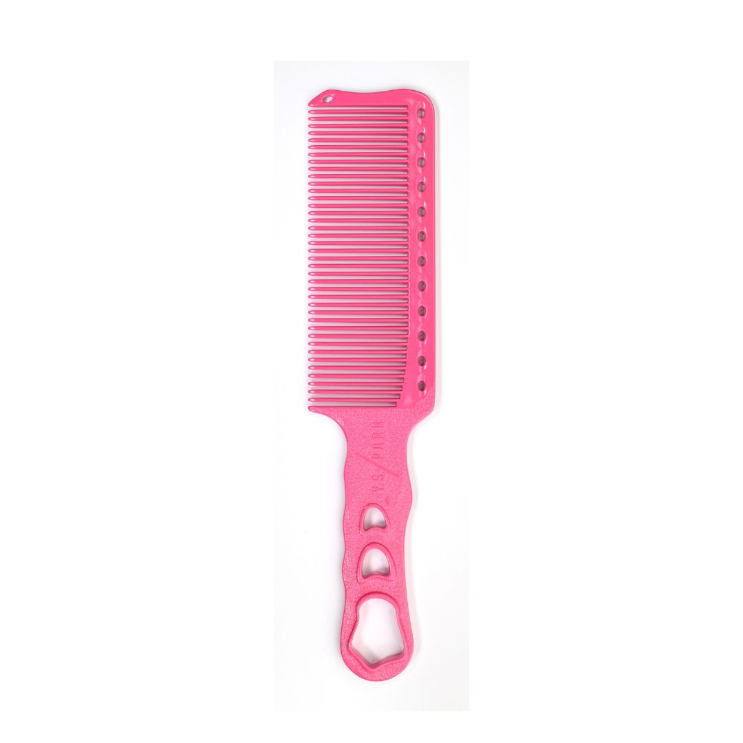 Barberarkam som är speciellt framtagen för att användas tillsammans med klippmaskin över kam. Kammen står ut med sin storlek och sitt avstånd mellan tänderna. Utrustad med Gradual Pitch. Kammen är lätt och flexibel men ändå stark och kraftig för att kunna lyfta upp hår utan kompromisser. Lädermönster på handtaget med hål för att undvika att glida iväg med handen samt snabba på torktiden för en blöt hand. Ena sidan på kammen är formad efter huvudet för att på ett enkelt sätt kunna få fram en 90°-vinkel på huvudet för exakt mätning av håret. Perfekt att använda ihop med fading-tekniker.