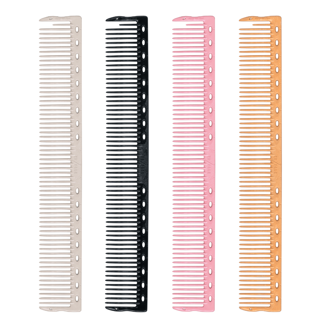YSP-405 är en lång kam med platta tänder, som YSP-402, och är av fintandad typ. Tänderna har en konkav form (som den ergonomiska kammen YSP-320) för ett stadigt grepp. Bra till medellånga till långa klippningar.